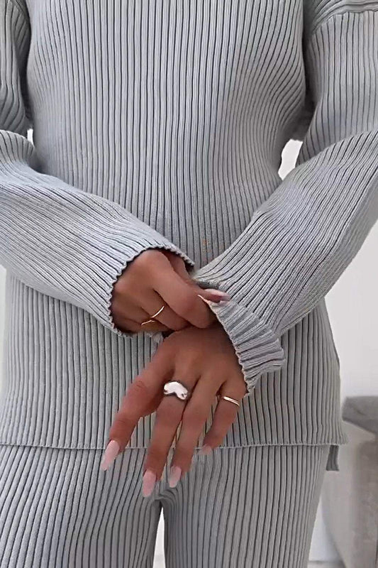 Zweiteiliges Set aus gestricktem Rollkragenoberteil und Hose für Damen