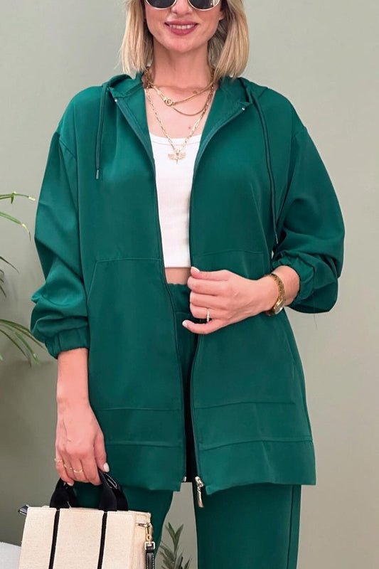 Damen Set aus Jacke und Hose mit einfarbigem Reißverschluss