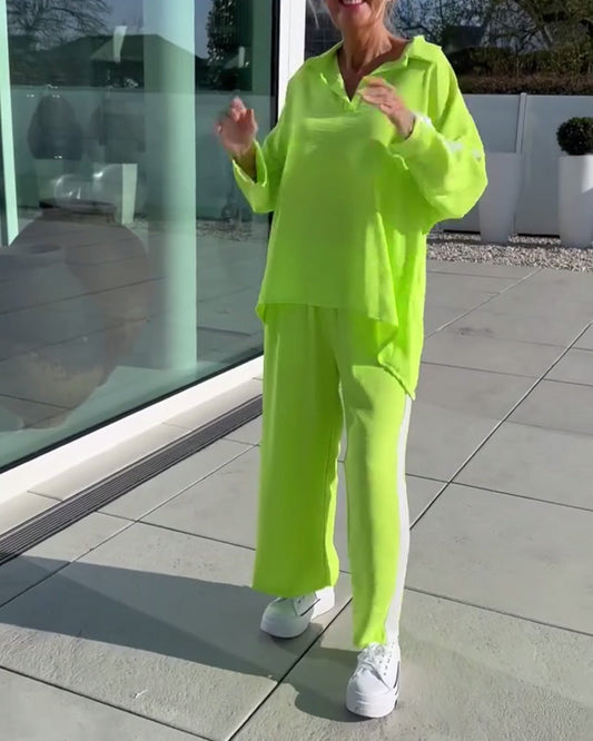 Modischer, lässiger Hosenanzug in Volltonfarbe