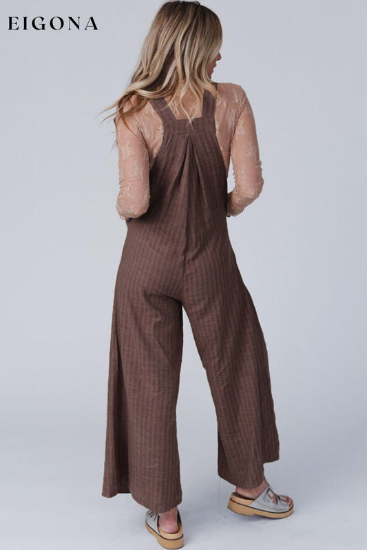 Macacão Chicory Café listrado plissado com perna larga e bolso